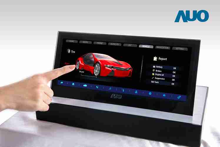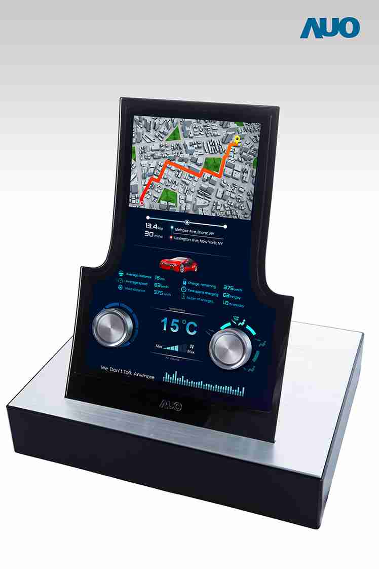 12.3 寸 Full HD LTPS 显示屏同样具备 1000 nits 高亮度,,搭载内嵌式触控技术,,,,整合驱动与触控 IC 于显示屏制程,,,使显示屏厚度降低,,,为中控台创造更多机构设计空间。。。。应用于抬头显示器的 3寸 LTPS 显示屏具有高穿透率、、、、1200:1 高对比度度,,,以及 297 PPI 高画素密度。。。。液晶最高可耐受到 110C 的高温 (TNI) 而不液化,,,,在阳光高温下维持优异稳定的显示效果。。。
