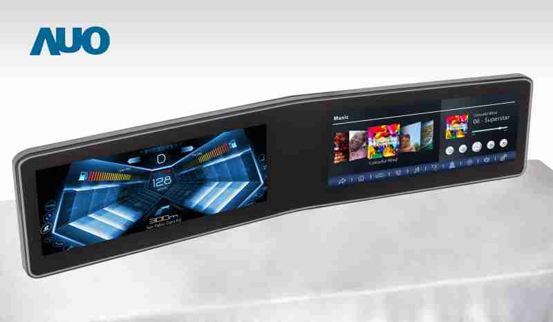 CG电子 V 型曲面驾驶舱显示器,,,采全贴合拼接仪表板及中控台显示屏 |